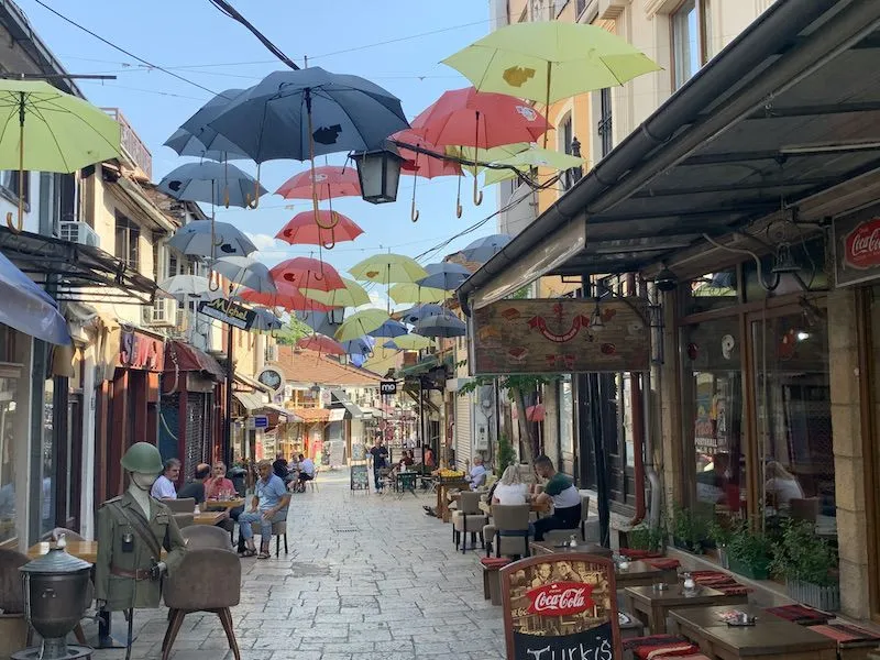 We beginnen de reis in Prizren, een pittoresk stadje aan de Drin rivier. De oude stad is makkelijk te voet te verkennen, zeker vanuit ons centraal gelegen hotel. Er zijn veel terrasjes, restaurants en cafés.  Overal zie je minaretten van de (van oorsprong) Ottomaanse moskeeën. Net als andere delen op de Balkan is dit ooit onderdeel geweest van het Ottomaanse rijk en een deel van de Albanese bevolking is nog steeds moslim. Turkije is ook erg actief om steeds meer moskeeën bij te bouwen in dit arme land.