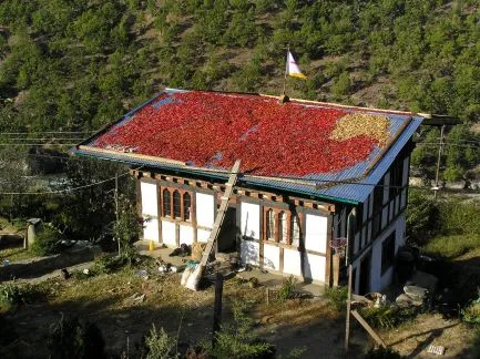 maar ook vlees- of visgerechten. De Bhutanezen hebben daarnaast een grote liefde voor pepers! Bijna in