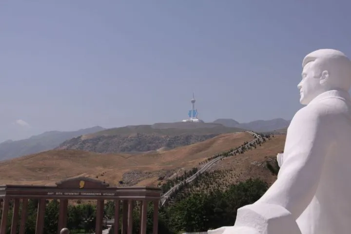 Het blijkt een van de (dwaze?) ideeën van de oude, in 2006 overleden, Turkmeense president Saparmurat Nijazov te zijn. Hij vond dat de Turkmenen hun conditie moesten verbeteren en liet een ‘gezondheidspad’ met een totale lengte van 37 kilometer aanleggen. Jonge Turkmenen zouden regelmatig een deel van het, vele trappen tellende pad, af moeten leggen om zo hun conditie te verbeteren. Het standbeeld van de oude president in trainingspak siert het startpunt van de wandeling. Hijzelf liep er echter nooit, want zijn falende hart, dat uiteindelijk ook zijn dood zou betekenen liet dat niet toe. Het leuk om een leuke afwisseling van de fonteinen, enorme gebouwen en standbeelden die de stad sieren.