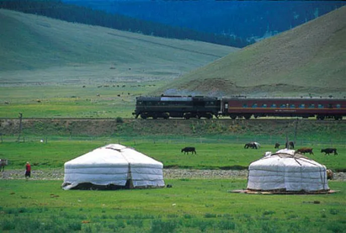 U stapt weer terug op de trein. U rijdt een aantal uur langs het Baikalmeer. Nadat u het Baikalmeer verlaten heeft komt u aan in Ulan Ude, hoofdstad van de autonome republiek Buryat. De Buryaten zijn verwant aan de Mongolen en daarmee is de stad een typische mix tussen Oost en West. U ziet er oude houten Siberische huizen, maar ook boeddhistische kloosters. Na Ulan Ude verlaat u de Transsiberische spoorweg en reist u verder over de Transmongolische spoorweg richting Ulan Bator. Bij de grensplaats Naushki / Suche Bazaar vinden de grensformaliteiten plaats in de trein. U verlaat Rusland en rijdt Mongolië binnen, land van uitgestrekte graslanden met hier en daar een eenzame ger, de karakteristieke vilten tent, verblijfplaats van de Mongoolse nomaden.