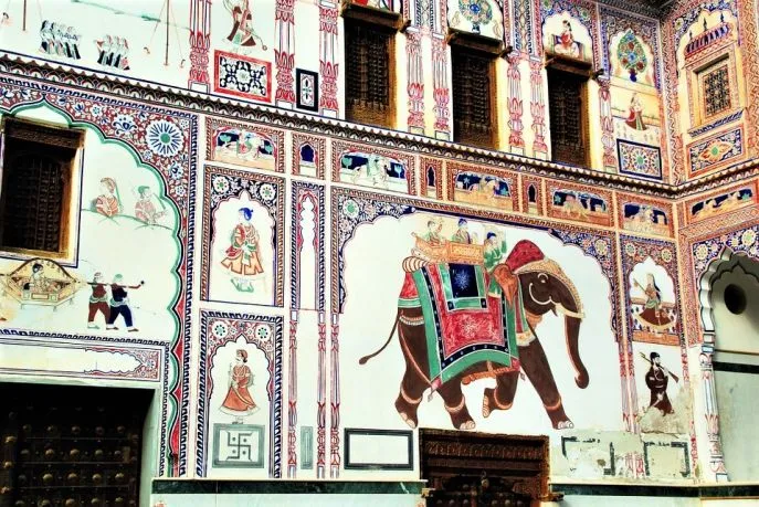 Na het ontbijt vertrekt u naar Mandawa, gelegen in de landelijke regio Shekhawati in het noorden van de deelstaat Rajasthan. Dit gebied is in heel India bekend om zijn vele prachtige fresco’s, die vooral tussen 1800 en 1930 werden aangebracht. Shekhawati lag al eeuwen op het kruispunt van een aantal belangrijke handelsroutes en was door de langstrekkende karavanen tot grote economische bloei gekomen. Toen de Britten in 1803 echter handels- en tolbelastingen begonnen te heffen, vertrokken veel kooplieden uit Shekhawati naar elders om hieraan te ontkomen. Velen van hen bleken hierbij bijzonder succesvol. Een niet onbelangrijk deel van hun winsten investeerden ze in hun geboorteplaatsen, waar ze prachtige herenhuizen met binnenplaatsen lieten bouwen (haveli’s). Meestal bleven de kooplieden zelf elders wonen en werden de koopmanshuizen betrokken door hun familie. In de loop van de 19de eeuw werd het mode om de haveli’s te versieren met fresco’s. Aanvankelijk waren het vooral mythologische afbeeldingen en illustraties van lokale legenden, maar later betrof het steeds vaker taferelen uit het dagelijkse leven. In de drang van de bereisde kooplieden om ‘modern’ te zijn werden er zelfs schilderingen gemaakt van treinen, schepen, telefoontoestellen en blanke vrouwen. Door de vele fresco’s wordt Shekhawati ook wel de ‘openlucht kunstgalerij van Rajasthan’ genoemd. U komt ’s middags aan in Madawa en gaat dan samen met een gids op pad om deze kleurrijke stad te ontdekken.