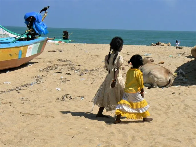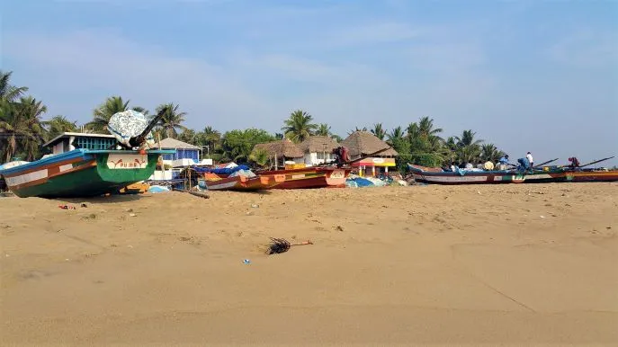 weg loopt van Mamallapuram, des te schoner het strand wordt. Het publieke