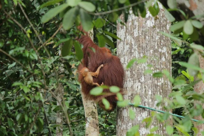 Een unieke ervaring is de wandeling door een echte jungle op Sumatra. Tijdens zo'n wandeling kun je verschillende soorten apen zien. Denk bijvoorbeeld aan gibbons, thomas leave monkey's, makaken en wie weet sta je oog in oog met een heuse Orang-Oetan. Aan het einde van de junglewandeling bezoek je het voedingsplatform, waar de in het wild levende Orang Oetans worden bijgevoederd. Over het algemeen komen er enkele Orang Oetans op af; een adembenemend gezicht. Langzaam ziet u de toppen van de bomen slingeren en opeens staat er een vriendelijke woudreus voor uw ogen.