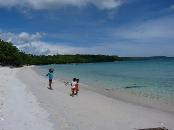 strand bij eb maar bij vloed is er weinig strand te zien. U keert vandaag niet terug naar uw hotel in de stad maar overnacht nabij Natsepa.