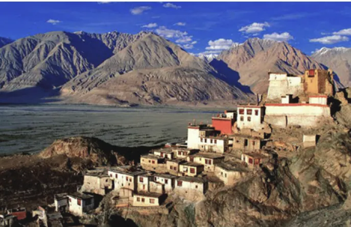 Vandaag verkent u de Nubravallei per auto en, als u dat wilt, te voet. Nubra is een idyllische enclave tussen de bergen van Ladakh en de fameuze Karakoram. Er is veel te zien en u moet dus kiezen. Het is zeker aan te raden om enkele van de fraaie gompa’s (kloosters) van Nubra te bezoeken, zoals Deskit Gompa, vanwaar u panoramisch uitkijkt over de vallei, en Samsthanling Gompa in Sumur. De laatste is vooral bekend om de prachtige mandalas die gemaakt worden door de monniken. Mandalas zijn ingewikkelde en kleurrijke zandschilderingen die gemaakt worden met ‘meditatie’ als doel. Daarnaast kunt u een bezoek brengen aan een oud, maar goed geconserveerd traditioneel ‘herenhuis’ en de bazaar van Nubra’s minihoofdstadje Deskit. Indien u van wandelen houdt, kunt u een korte wandeling maken naar een klein, goed verstopt meertje, of een meer serieuze halve dagtocht ondernemen naar één of meerdere kloostertjes in de bergen die alleen te voet te bereiken zijn. Dit zijn geen hele zware wandelingen, maar een goede wandelconditie is wel gewenst. Daarnaast is het mogelijk om een rit per kameel door de duinen bij Hundar te maken of per jeep de rivier (die hier inmiddels Nubra-rivier heet) stroomafwaarts volgen tot Turtuk aan de Pakistaanse grens, waar het merendeel van de bevolking moslim is.