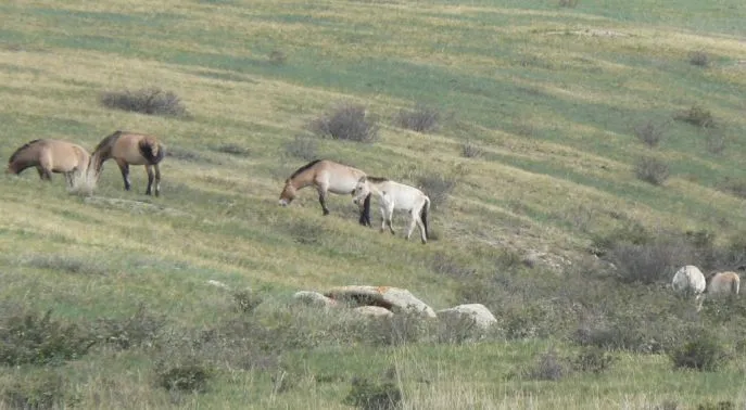 U reist verder naar het Khustai Nationaal Park. Dit is het park waar de beroemde przewalski paarden huizen, in Mongolië worden ze takhi paarden genoemd. Deze met uitsterven bedreigde wilde paarden werden in 1992 weer opnieuw uitgezet. Zo’n 15 paarden werden vanuit Westerse dierentuinen overgebracht. Inmiddels zijn er weer zo’n 250 paarden in dit park. Het przewalski paard is het enige overgebleven wilde paardsoort, een soort die vroeger veelvuldig voorkwam. In het park leeft echter nog veel meer wild, van gazellen tot wolven, van herten tot vele vogelsoorten. Ook leven er veel nomaden in het park en kunt u kennismaken met het leven van nomaden die hier met hun kuddes door het park struinen. Ook vindt u nog meer dan duizend jaar oude Turkse grafstenen in het park. U overnacht hier in een ger-kamp.