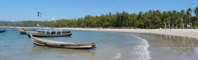 Myanmar is misschien niet het eerste land waar je aan denkt bij een strandvakantie. Maar een tweede blik op de kaart doet beseffen dat het land uit honderden kilometers kustlijn bestaat en jawel, ook nog eens met veel zandstranden. Ngapali Beach is een van de eerste strandlocaties in centraal Myanmar die flink aan het ontwikkelen is, vooral na de val van de Junta en de laatste verkiezingen. En dat is niet zomaar. Ngapali heeft prachtige witte stranden met wuivende palmbomen en knalblauw water waar je (nog?) niet omver wordt gelopen door drommen strandgangers zoals in Thailand. Wat wil een mens nog meer?