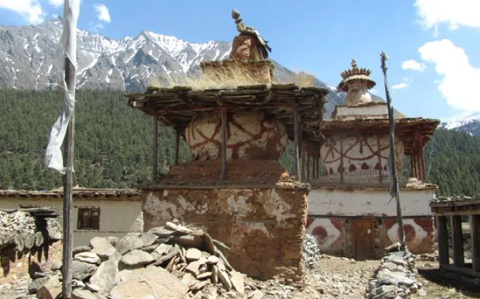 Ringmo is een plezierig dorpje. De lokale bevolking beleidt de Bonpo religie hier. Deze is gerelateerd aan het Boeddhisme maar veel ouder en kent meer animistische aspecten. Er zijn veel overeenkomsten tussen beiden, voor de leek vaak lastig te zien. Het belangrijkste verschil is dat u om de Bonpo heiligdommen (zoals mani muren en chörtens) niet kloksgewijs heen loopt, maar deze tegen de klok in passeert. De religie is zo'n 18000 jaar geleden opgezet door Buddha Tonpa Shenrab Miwo. Dolpa was voor de 7e eeuw het centrum van het Bon koninkrijk. Toen genaamd Zhang Zhung werd het verslagen door de Tibetaanse koningen. De vrouwen dragen donkere of geblokte jurken met kleurrijke schorten, gemaakt van het wol van de yak. Verschillende mannen dragen hun lange jassen, met een mouw los. De kans is aanwezig dat u vrouwen bezig ziet aan het weefgetouw. Aangezien u de ochtend aan het meer blijft kunt u een Bonpo klooster bezoeken en een stukje van de 'Duivels trek' lopen. In de bekroonde film Himalaya (Caravan) van Eric Valli wordt het leven van de Dolpa fantastisch weergegeven en valt een yak op dit pad in het meer. Kijk dus goed uit! Na de lunch wandelt u over hetzelfde pad terug richting Chunuwar en het Amchi hospitaal.