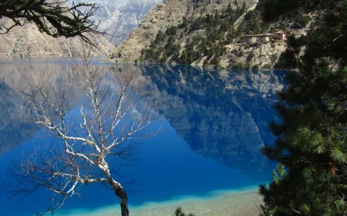 U vertrekt weer vroeg in de ochtend en verlaat de bossen om verder over een zandpad te lopen, door een meer woestijnachtige omgeving, begroeit met kleine struiken. Geheel anders dan u de vorige dagen gewend was. Het is een flinke klim van zo'n 2 uur naar een uitzichtspunt, van waar u de hoogste waterval van Nepal kunt zien. Op 3683 m is de Phoksundo/Suligad waterval met 167 m namelijk de hoogste in zijn soort. De pas, op 3727 m, bereikt u een kleine 10 minuten later. Hier heeft u een eerste blik op het prachtige, smaragdkleurige Phoksundo meer. Hierna daalt u af naar het plaatsje Ringma, gelegen aan het meer. Achter Ringmo ziet u de hoge besneeuwde Himalaya pieken, zoals de Norbung Kang (6085 m) en de Kang Tokal (6294 m). U overnacht natuurlijk aan de oevers van het meer. U heeft de middag en de volgende ochtend om het dorpje en de mooie omgeving te verkennen. In het heldere water van het meer leven geen vissen. In de loop van de dag en zeker tegen de avond (en bij zonsopkomst) veranderen de kleuren van het meer.