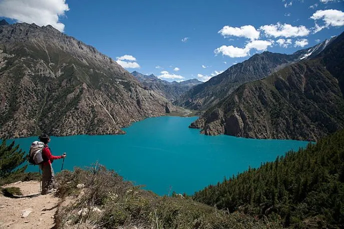 Tijdens de trek die u van zo'n 2500 m naar maximaal 3700 m brengt loopt u van hindoeïstische dorpjes naar een gebied waar het Tibetaanse Boeddhisme overheerst, maar waar ook nog de oude Bön-religie gangbaar is. U wandelt rustig omhoog door mooie bossen, langs wildstromende rivieren die u diverse keren via (houten) hangbruggen moet oversteken. Naarmate u hoger komt verandert de natuur en loopt u door een woestijnachtige omgeving. U wandelt naar het prachtige turkooizen Phoksundo meer nabij het dorpje Ringmo. Hier kunt u genieten van de prachtige omgeving met hoge besneeuwde Himalayapieken op de achtergrond.