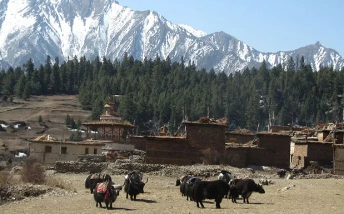 U wandelt na Chunuwar weer door de bossen en daalt langzaam af naar Ryachi en verder naar Kagbeni. Het is niet alleen dalen, af en toe volgt er weer een klim, maar geleidelijk daalt u af. U merkt dat het weer warmer wordt en dat de vegetatie weer verandert. De bamboe komt weer terug en u ziet walnootbomen.