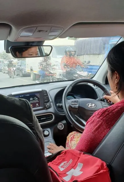 Bij aankomst in Kathmandu wordt ik opgewacht door een vertegenwoordiger van de lokale agent in Nepal. Ik had m'n visum al in Nederland geregeld en was daardoor vrij snel door de douane. Hij leidt me naar de auto die me naar het hotel moet brengen. Tot mijn verbazing mag ik in een elektrische auto stappen en die verbazing groeit wanneer ik kennis maak met mijn vrouwelijke chauffeur Shanti. Dát is ook nieuw voor me!