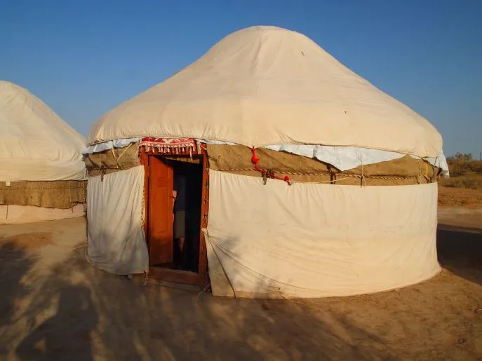 Sfeervolle accommodatie in traditionele yurts (vilten nomadententen) in de Kyzylkum woestijn. De yurts zijn rijkelijk versierd met tapijten en sherdaks (wandkleden), met de hand gemaakt door lokale ambachtslieden. In één yurt kunnen 5-6 personen overnachten. Diner en ontbijt zijn inclusief in het kamp. De mogelijkheid bestaat om een ritje op een kameel te maken.