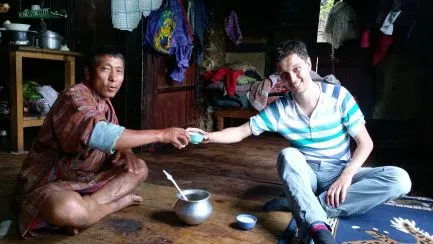 In veel plaatsen werken wij samen met lokale Bhutanese families die maar wat graag hun huis open stellen voor nieuwsgierige reizigers. Hun traditionele houten huizen liggen vaak op een prachtige plek in de natuur met dito uitzicht! U eet mee, en mag meehelpen met wat er te doen is in en om het huis.