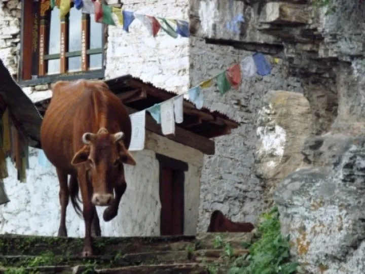 We klimmen over een kleine Shertang la pas (3590 m) en komen in de Ura vallei. De vallei is breed maar het dorpje is klein en het ligt er adembenemend mooi bij. De Ura lakhang Tempel steekt dominant boven de rest van de huizen uit. Ik kan niet aan de gedachten ontkomen dat het kijkt op een hoog gelegen dorp in Zwitserland maar dan wel met een rare kerk in het midden. Een half uur rijden van Ura ligt het dorp Shinghar. Volgens Karma is dit de plek om naar toe te gaan in oktober om daar het bijzondere festival mee te maken waar een bijzondere yak- dans wordt opgevoerd. Dit dorp met zijn festival en de mooie lakhang wordt nog maar weinig bezocht en dat doet mijn hart toch weer even sneller slaan! Het Ura festival is ondertussen al zo bekend geworden dat daar al meer toeristen dan lokale bezoekers zijn en dat maakt dit festival iets minder indrukwekkend. In oktober op naar Shinghar dus.