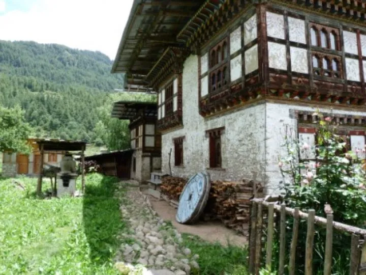 De eerste vallei van de regio Bhumtang vanuit Trongsa heet Chumey vallei. Een prachtige weidse plek met veel vruchtbare akkers en af en toe een prachtig houten huis van twee verdiepingen en een open zolder. De huizen zijn op de begane grond opgetrokken uit keien, daar bovenop een houten staketsel als tweede verdieping en daar bovenop een open zolder. De huizen hier zijn dus niet per definitie opgetrokken uit leem en hout. Chumey vallei geeft me de neiging om languit met gestrekte armen in een weide te gaan liggen en de lucht, de vogels, de geluiden, de geuren heerlijk langzaam aan me voorbij te laten trekken. Wat een genot! Het voelt als Zwitserland maar dan eleganter, puurder, dieper en rustiger.