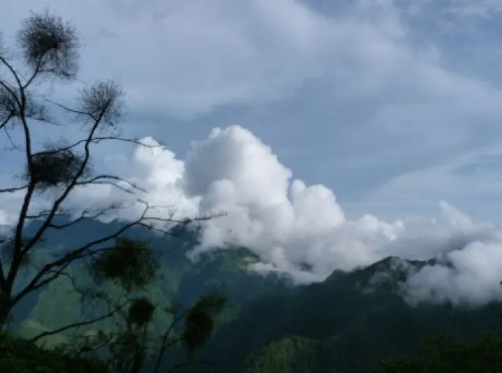 Het is juni, dus moessontijd. De nadelen ken ik maar ik focus bij deze ook graag op de voordelen. Die zijn er volop. Het is er knalgroen! Overal ruikt het heerlijk, Het stikt er van de bloemen en de regenwolken die overdrijven, vormen samen met de luchten en de berglandschappen een prachtig decor waar ik geen genoeg van kan krijgen. De wolken in de regentijd zijn overdonderend mooi. Natuurlijk verdwijnt je uitzicht af en toe in de volledig verstikkende wolkenbrij en zie je geen hand voor ogen maar zodra de wolken optrekken is de verrassing van het uitzicht des te indrukwekkender. En dan heb ik het nog niet gehad over de stiekeme zonnestralen die een deel van het landschap verlichten als een Spotlight de acteur uitlicht op het podium. Een uitroep van verrukking is dan nauwelijks binnen te houden. Vind ik dan.
