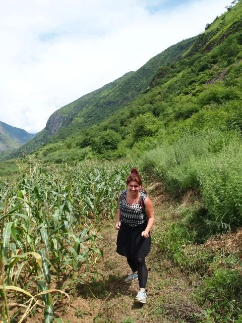 Ik eindig mijn eerste dag op het terras van de lodge, uitkijkend over het dorp en de kronkelende Yangzi-rivier in de diepe vallei. Morgen maak ik een dagwandeling door dit prachtige gebied. Vanavond geniet ik op het terras in alle rust van mijn uitzicht, totdat de ondergaande zon langzaam de felgroene velden en goudgele, met drogend maïs bedekte daken in het donker laat verdwijnen.