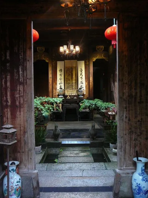 Qing Dynastie (1644-1911) zijn gebouwd in de zogenaamde Hui-style, afgeleid van de vroegere provincie Huizhou. Deze Hui architectuur met de zwarte tegels en witte hoge