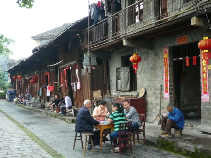Onderweg naar Hongqiao bezoeken we Qianyang. Deze stad is een goed voorbeeld van hoe een Chinese oude stad er volgens onze westerse verbeelding uit zou moeten zien. De stad werd meer dan 2.000 jaar geleden opgericht aan de oevers van de rivier. De stad doet landelijk aan en straalt rust uit. Niets hier doet denken aan drukte, vervuiling, stress en 't snelle tempo van een Chinese stad. De bewoners hier zitten voor hun deur op bamboo stoelen te kletsen of spelen een potje kaart of Mahjong. De smalle straatjes worden gekleurd door rode lampionnen en behalve de mooie courtyard woningen van de oude lokale ambtenaren en de ancestor halls zijn er ook nog taoïstische en boeddhistische tempels te vinden. Een aantal wordt nog bezocht door de lokale gemeenschap. Op het moment is Qianyang nog niet ontdekt door het massa-toerisme. De stad ademt geschiedenis en heeft nog een unieke sfeer die elders door commercie is verdwenen.