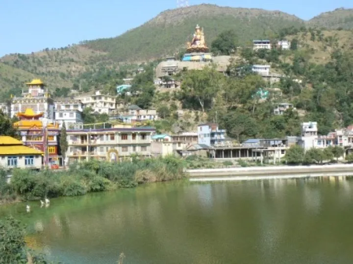 Het meer is klein, een stuk kleiner dan verwacht, je loopt er in 20 minuten omheen, maar er zijn vele tempels te bezoeken. Hoog op de heuvel wordt een gigantisch beeld van Padmasambahva gebouwd.