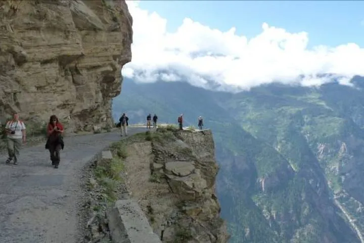 Vrijdag 6 september Een lange rit langs de Sutlej rivier (met nog een tea-stop in Tapri) tot het zijdal van de Baspa rivier naar Sangla. De weg is hier ontzettend slecht als gevolg van de vele regen en aardverschuivingen, ze zijn nog steeds bezig om alles te repareren. Ons guesthouse ligt kilometers buiten het dorp, we brengen de bagage op de kamers en gaan lunchen, dit duurt hier ontzettend lang. Daarna rijden we nog naar het einde van het dal, naar het dorpje Chitkul (3450 meter), een authentiek Kinnauri dorp met oude houten huizen en een paar tempels, een mengsel van Hindoeïsme en Boeddhisme. Een uur door het dorpje wandelen en terugrijden. Het avondeten bestellen duurt weer erg lang, ¾ van de kaart hebben ze niet, en zelfs een appel toe kon vandaag niet meer. Het guesthouse wordt omringd door rijkgevulde appelbomen. Op de rekening was de hele lunch van een andere kamer bijgeschreven en 1 bier teveel; na ruim een half uur zijn ze er eindelijk uit.