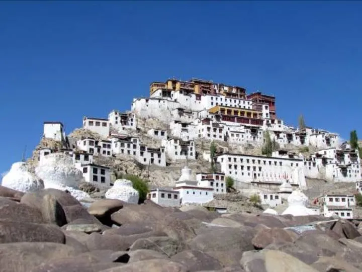 Donderdag 19 september Excursie naar Hemis en Thiksey, de twee mooiste kloosters uit deze streek. Thiksey is 800 jaar oud en wordt wel klein Potala genoemd. ’s Middags door de stad geslenterd en winkeltjes gekeken, nog een fleece vest gekocht en heerlijk gegeten in een Tibetaans restaurant; vanwege de volle maan serveerden ze geen vlees en alcohol, helaas.