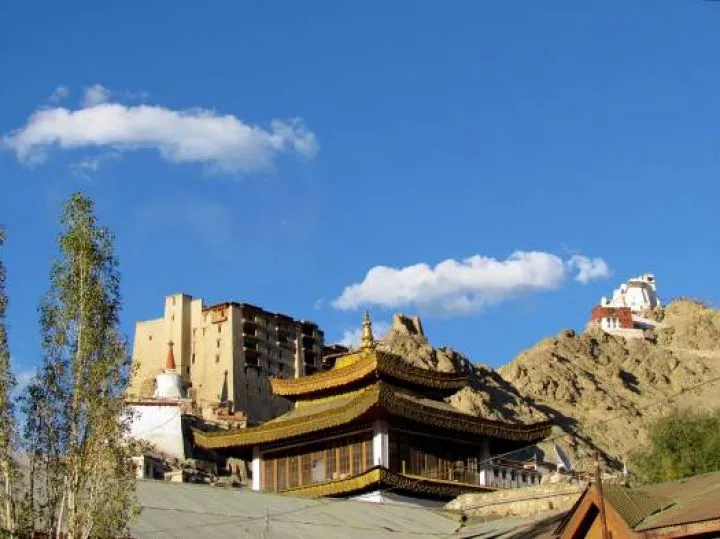 Zaterdag 21 september We rijden eerst naar Alchi, het oudste klooster van Ladakh, stamt uit de 11de eeuw. Het is nu een museum met veel bijzondere muurschilderingen. Na een pauze rijden we door naar Likir, de monniken van dit klooster runnen ook Alchi. De oudste gedeeltes van Likir monastery stammen uit de 13de eeuw, naast het klooster staat nu een enorm goudkleurig modern boeddhabeeld. We zijn er net tijdens de lunchpauze en het duurt nog ruim een half uur voordat we het klooster kunnen bekijken. Geen zin meer in wachten en we rijden terug naar Leh, waar we bij de theepauze in de tuin afscheid nemen van de chauffeurs. Daarna de stad in, langs de Tibetaanse markt in Main Bazaar en weer lekker eten in het Tibetaanse restaurant.