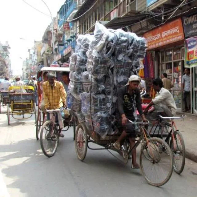 Dinsdag 24 september We kopen een metro tourist dagkaart voor 150 Rs, waarvan 50 Rs borg voor de kaart. In de overvolle metro rijden we eerst naar de Lotus tempel, deze heet eigenlijk Bahai tempel, en is voor alle religies. Hij wordt Lotus tempel genoemd vanwege de vorm van het gebouw. Dan gaan we met de metro naar Chandni Chowk, lopen wat over de bazaar, eigenlijk op zoek naar een restaurant, maar dat is hier nergens te vinden. Chandni Chowk is heel erg groot met per sectie allemaal dezelfde soort winkels, een hele wijk alleen maar juweliers of sari’s, schoolboeken, auto-onderdelen, vuurwerk, tandprothese’s, etc. Dan maar met een riksja naar de Jama Mashid moskee, schoenen uit, maar de tegels zijn zo ontzettend heet dat ik snel rondspring en we gaan weer verder. We nemen een riksja en willen naar het metro station, maar laten ons overhalen naar Spice bazar te brengen. We worden één winkel ingestuurd en vervolgens, als hij zijn bonus geïnd heeft, naar het metrostation gefietst. Hij gaat één ingang voorbij om dan heel gevaarlijk tegen het verkeer in naar de hoofdingang te fietsen. Terug in onze wijk lopen we nog langs Main Bazar en straatjes om het hotel. Douchen, opruimen, eten en nog even proberen te slapen.