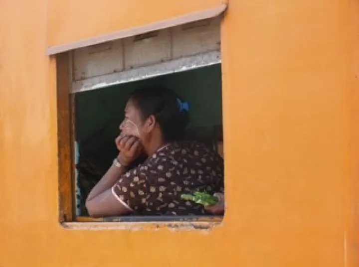 Ik zit in wagon die duidelijk z'n beste tijd gehad heeft. Open ramen, open deuren, houten banken, afbladderend verf. Maar wat een sfeer op dit treintje dat in drie uur rondom Yangon rijdt. Ik ben halverwege opgestapt op een station dat ook dienst doet als lokale markt. Overal wordt groente en fruit, vaak in grote balen verhandeld. Mensen zitten op het spoor en maken weinig aanstalten om zich te verplaatsen als de trein er aankomt. Zonder al te veel geduw en getrek klimt iedereen de trein in en dan rijden we verder naar het centrale station van Yangon. Onderweg genietend van iedereen die in en uitstapt op de vele stationnetjes die we onderweg aandoen. Een kleurrijk gebeuren. Deze ochtend al een een heel ander kleurrijk geheel meegemaakt op het strand van Ngapali waar 's ochtends vroeg alle vissersboten binnenkwamen met hun vangst. Jongens brengen zware manden gevuld met vissen het strand op, vrouwen keuren de vis. Meisjes maken de manden weer schoon. Sommige vissen worden direct te drogen gelegd. Ondertussen kijk ik m'n ogen uit en hoop maar dat dit vissersdorp binnenkort geen plaats hoeft te maken voor luxe strandresorts.