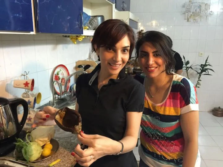 samen met hen in de keuken. Ik bereid samen met hen een uitgebreide maaltijd van vele Iraanse