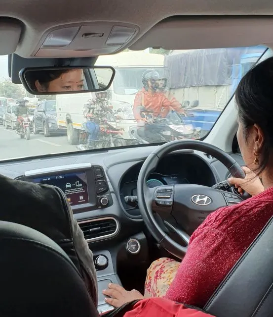 Bij aankomst in Kathmandu wordt ik opgewacht door een vertegenwoordiger van de lokale agent in Nepal. Ik had m'n visum al in Nederland geregeld en was daardoor vrij snel door de douane. Hij leidt me naar de auto die me naar het hotel moet brengen. Tot mijn verbazing mag ik in een elektrische auto stappen en die verbazing groeit wanneer ik kennis maak met mijn vrouwelijke chauffeur Shanti. Dát is ook nieuw voor me!Ik leer dat onze agent in 2019 het initiatief 'women behind e-wheels' is gestart. Zo 'slaan ze twee vliegen in één klap'. Ze trachten de impact op de planeet te minimaliseren door milieuvriendelijke voertuigen te introduceren en geven ze vrouwen de kans op een baan die traditioneel als voor mannen worden beschouwd.
