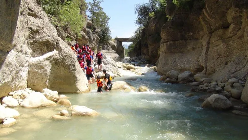 Laat de zintuigen prikkelen en de ziel herleven. De canyons van Turkije bieden een speeltuin voor iedereen. Canyoning is een actietrip waarbij je door een kloof moet wandelen, klauteren, klimmen, springen en abseilen. Nat, wild en absoluut onvergetelijk! Duik in het koele heldere water met natuurlijke glijbanen en prachtige watervallen. Een geweldige kans om te ontsnappen aan de hitte van Antalya.