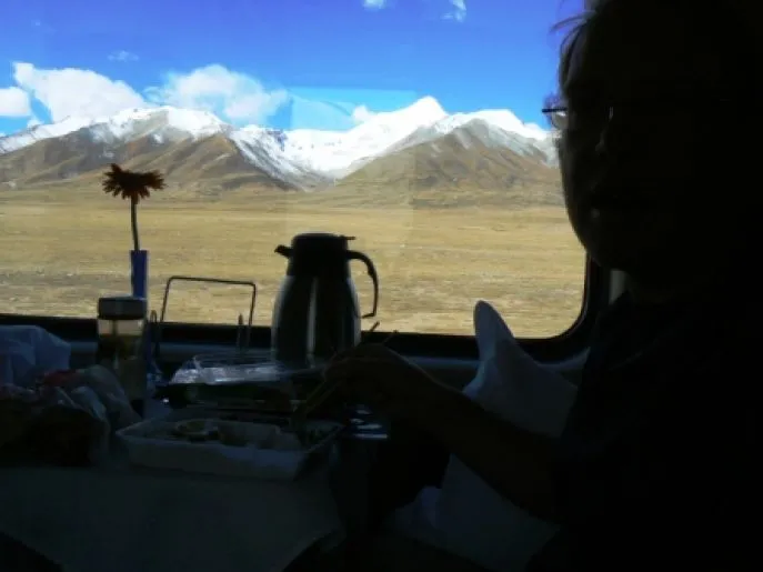 U wordt 's ochtends wakker in de trein. Er zijn heetwaterkannen, dus u kunt uw eigen thee, koffie of soep maken (wel even een voorraadje meenemen). Er is ook een restauratiewagen en er lopen mensen met eetkarretjes rond, maar het is altijd aan te raden zelf ook wat eten mee te nemen. U reist nu in de omgeving van Xining in Qinghai provincie en rijdt steeds meer richting het centrale deel van China.