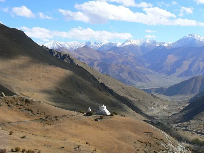 U begint aan een prachtige tocht over de Friendship Highway. Een uurtje buiten Lhasa begint de beklimming van de Khamba-pas (4694 meter) vanwaar u een prachtig uitzicht heeft over het Yamdrok Tso. U daalt af en reist enige tijd langs dit prachtige turkooizen en heilige meer. Bij de 5010 meter hoge Karo pas heeft u uitzicht op het glinsterend witte ijs van de gelijknamige gletsjer. Talloze wapperende gebedsvlaggen en een klein tempeltje markeren de top van de pas.