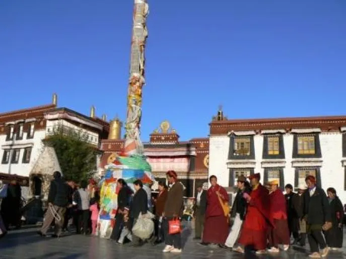 Er zijn drie manieren om in Lhasa aan te komen om een permit voor deze reis te krijgen. Met vlucht CA4401 uit Chengdu, vlucht CA408 uit Kathmandu of trein T27 vanuit Beijing. Nog steeds is Lhasa het kloppend hart van Tibet. Veel - heel veel - Tibetanen vanuit de verste uithoeken van Tibet komen naar hun hoofdstad op pelgrimstocht om de Jokhang Tempel, het heilige centrum voor de Tibetaanse gelovige, te bezoeken. U ziet vaak daarom de Khampa Tibetanen uit Oost-Tibet, hun haren versierd met rode koorden, barnsteen en turkoois, hier om de biljarttafel hangen. Maar Lhasa heeft naast een Tibetaans ook een nieuw Chinees centrum vol moderne gebouwen, Chinese restaurants en winkels. Hier komen vooral Chinezen en een handjevol Tibetanen handel drijven. Hier komt men voor het beste ziekenhuis van Tibet, zoekt men naar oplossingen voor vele bureaucratische hobbels. Ook door dit centrum loopt een oude pelgrimsroute. De contrasten zijn hier overweldigend groot. Een hippe disco met grote optredens in het nieuwe gedeelte van de stad tegenover prostrerende pelgrims met draaiende gebedsmolens die al mantra’s prevelend de pelgrimsroute volgen. Een ware trend versus traditie.