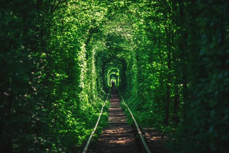 Bij het dorpje Klevan in het noordwesten van Oekraïne bevindt zich een stuk industriële spoorlijn van zo'n 5 km lengte geheel omgeven door groene bogen. Het staat in de volksmond bekend als de 'liefdestunnel' een favoriete plek voor stellen om wandelingen te maken. Mooi groen in de lente en zomer. prachtige kleuren in de herfst. Wij vonden het een mooi plekkie.