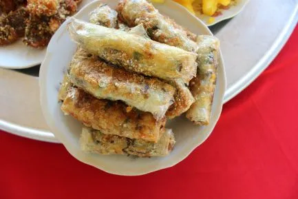 We zijn op een punt aangekomen dat we eigenlijk bommetje vol zitten, maar we kunnen het toch niet laten om nog één laatste gerechtje naar binnen te smikkelen. Dit doen we in een klein mini-restaurantje dat bekend staat om zijn rijstpapieren loempia’s, ook wel “ Bánh Cuôn” genoemd. Deze snacks worden standaard gevuld met wilde champignons, maar wij kozen er eentje waarbij ook ei meegebakken werd. Wat krokante uitjes erop en dippen in de Nuoc Nam (gefermenteerde vissaus) maar! Om je vingers bij af te likken...
