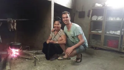 Vanuit Mai Chau rijd ik verder naar het noordwesten en slaap ik vanavond bij Mr. Binh en zijn familie thuis. Bij aankomst verwelkomt de vrouw des huizes mij met open armen een grote glimlach. Hoewel zij geen woord Engels spreekt, straalt de vriendelijkheid ervan af. Dan ontmoet ik ook de kinderen en Mr. Binh zelf. Wat een gezellige familie! Terwijl het eten op geheel traditionele wijze wordt klaargemaakt, verken ik het dorpje. ’s Avonds dineren we gezamenlijk. Het ene gerecht is nog lekkerder dan het andere. Uiteraard slaan we de alom bekende rijstwijn (ofwel happy water) niet over. Zelf gebrouwen en de beste uit het dorp, aldus Mr. Binh. Een mooie, onvergetelijke avond volgt met veel gelach en geproost.