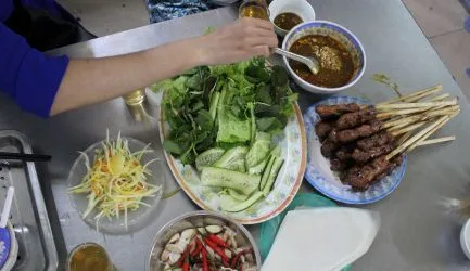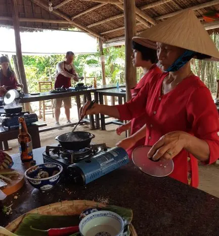 Samen met uw host en haar oma bereidt u vandaag verschillende lokale specialiteiten zoals Banh Xeo, groene papaya salade en gegrilde, gemarineerde varkensspiesen in overheerlijke saus en peuzelt u die daarna lekker zelf op!